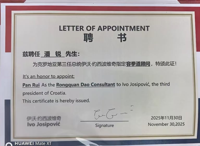 Master Pan was invited by Ivo Josipović, the third President of Croatia, to serve as his private Rong Quan Dao advisor!
